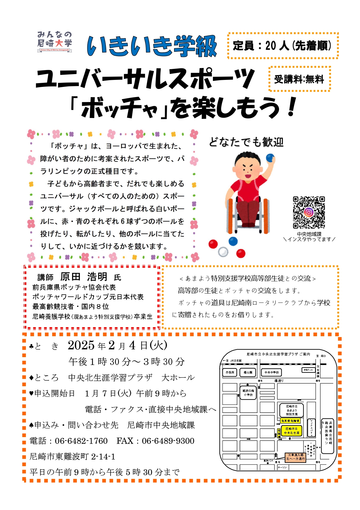 『ユニバーサルスポーツ 「ボッチャ」を楽しもう!』下記の通り開催します。