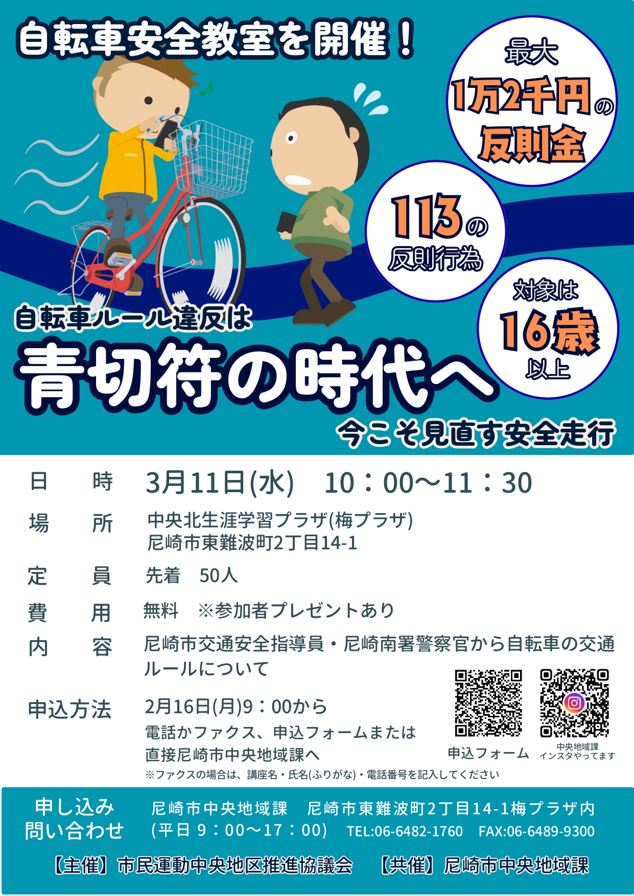 『自転車安全教室 自転車ルール違反は青切符の時代へ・今こそ見直す安全走行』を下記の通り開催します。